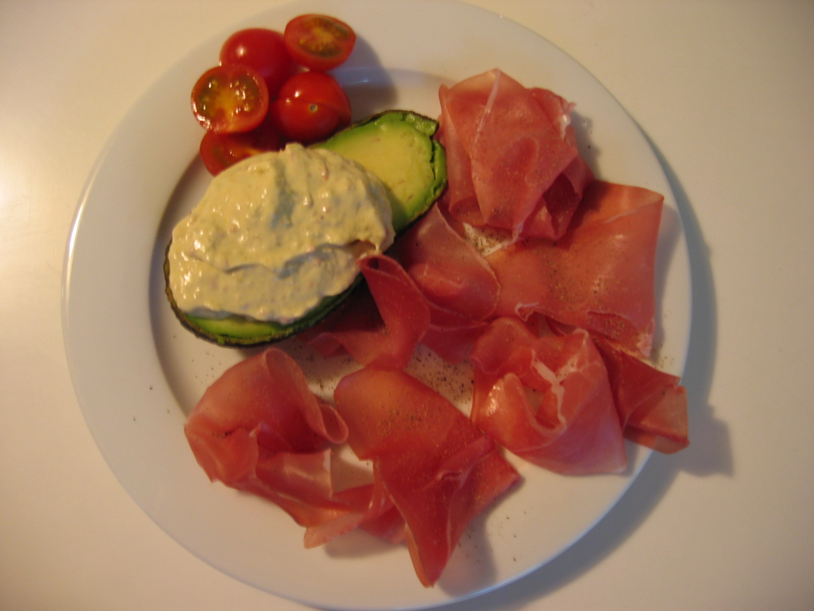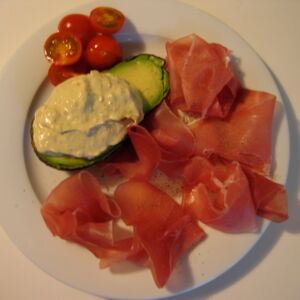 Kalbs-Avocado-Speckstern mit Ollucos an Frischkäse