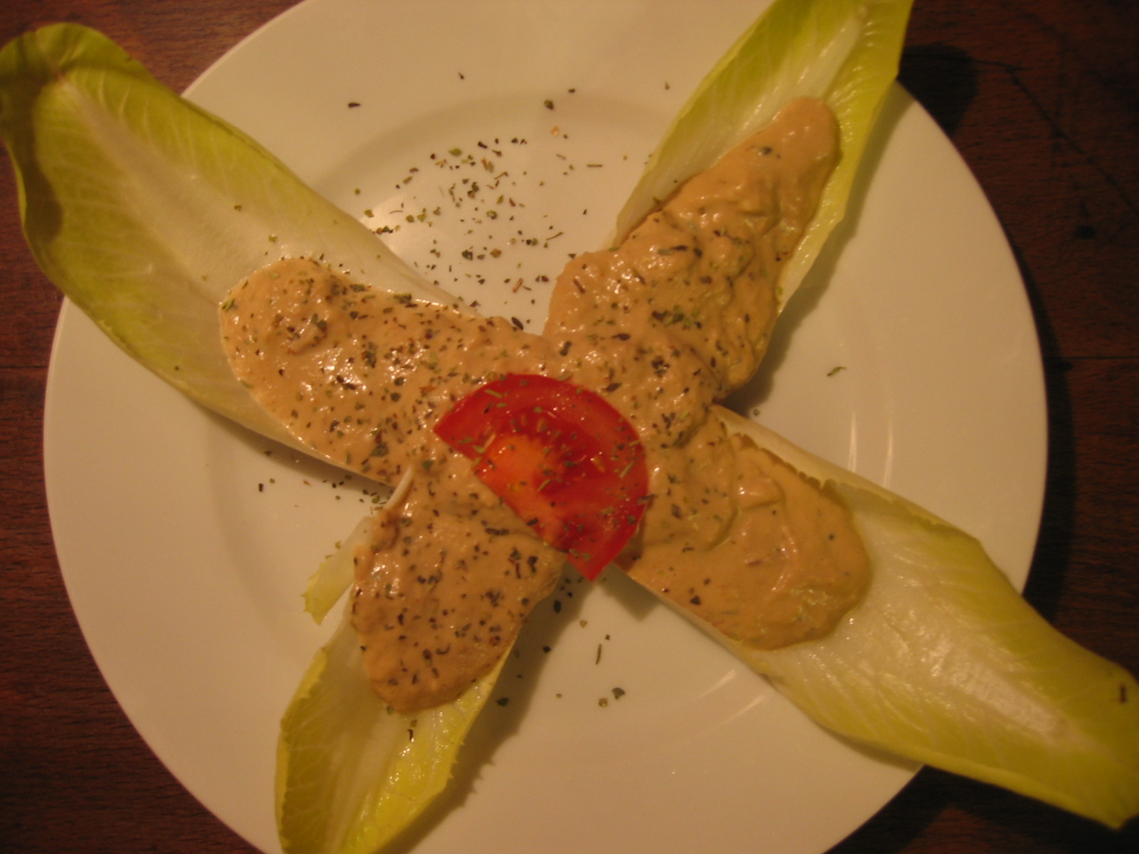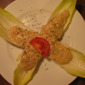 Chicoréeschiffchen gefüllt mit Thon-Brie-Mousse