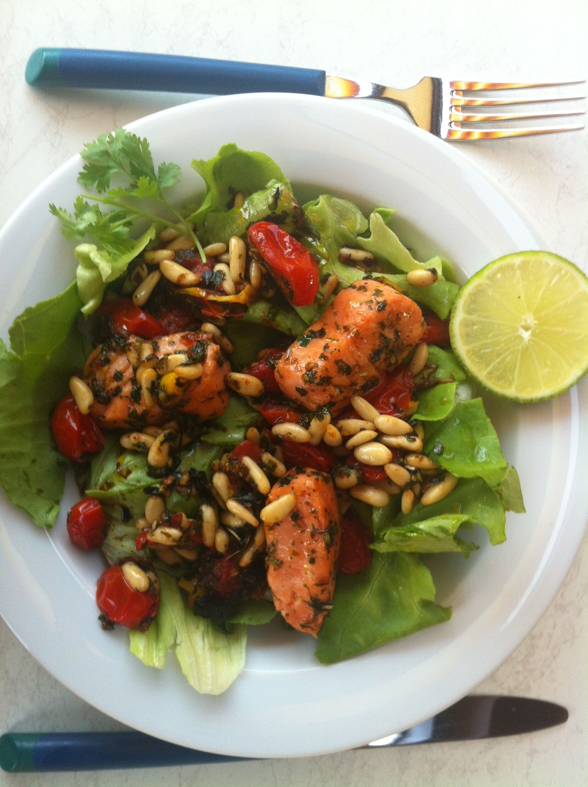 Lachstomaten auf Kopfsalat
