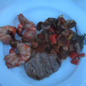 frühsommerliches Surf‘n turf (und Käse) mit Gemüse