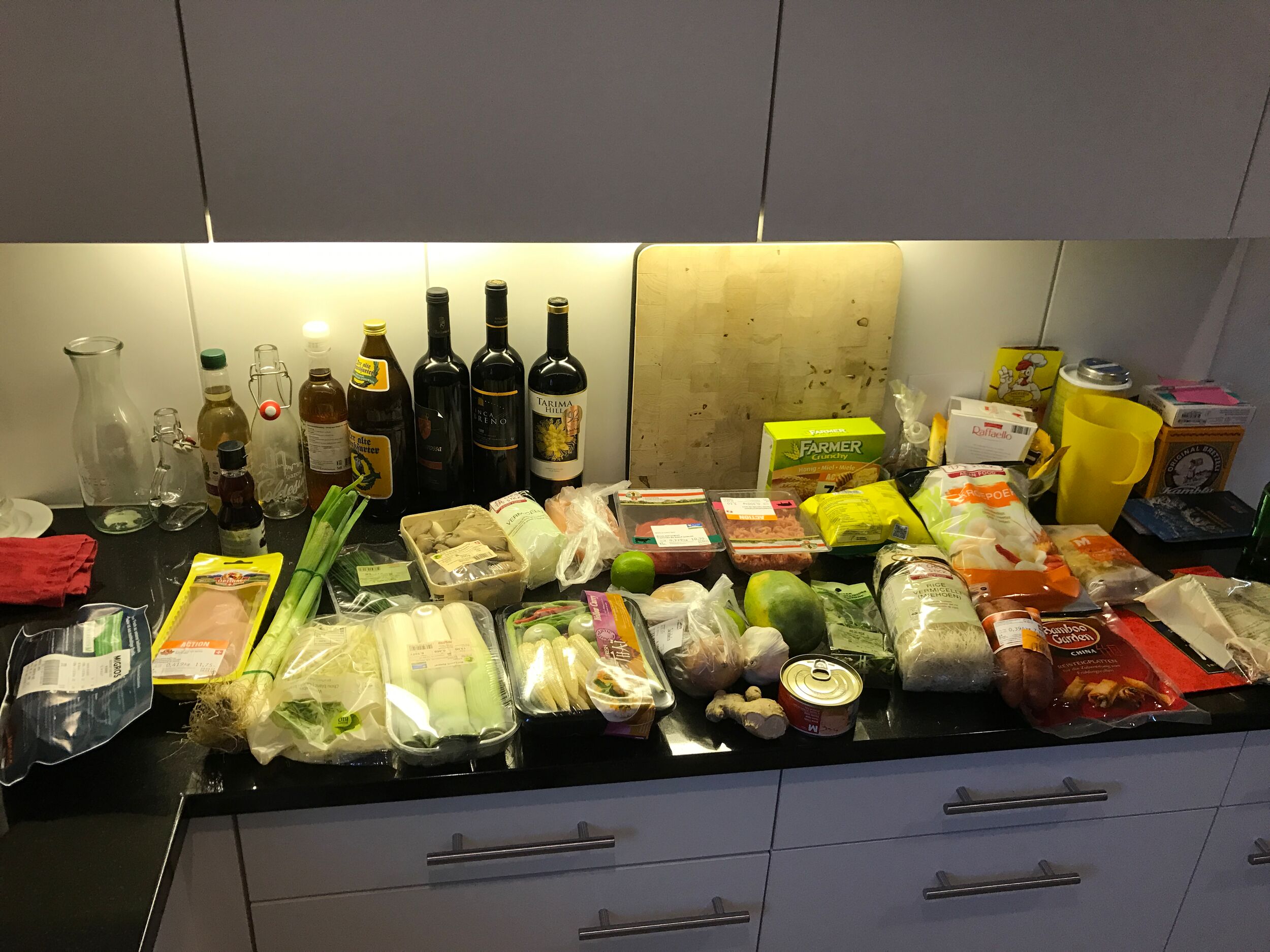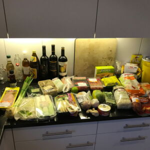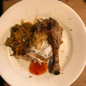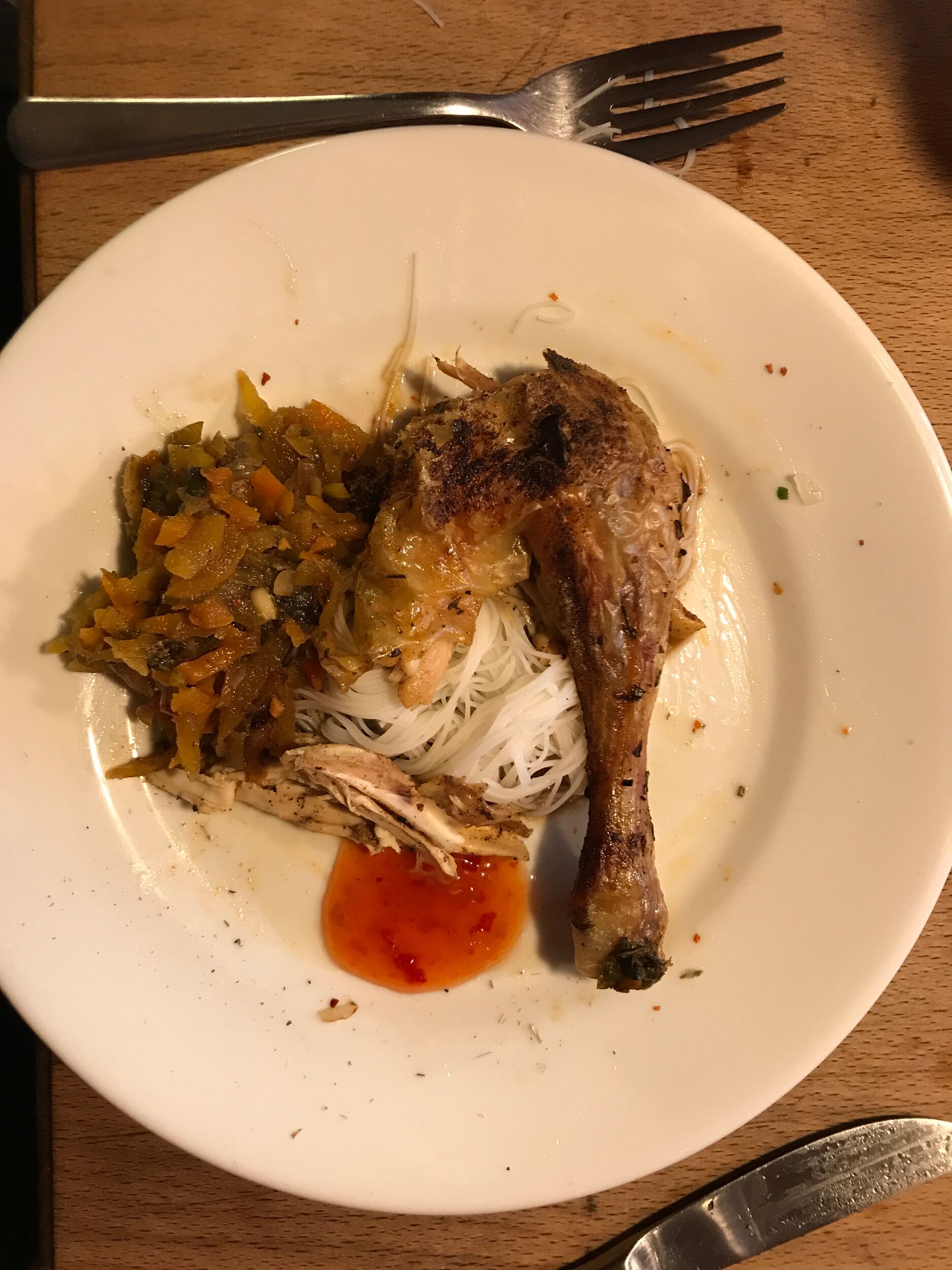 auf Bier gekochtes Poulet mit Noodles und Rüebligemüse