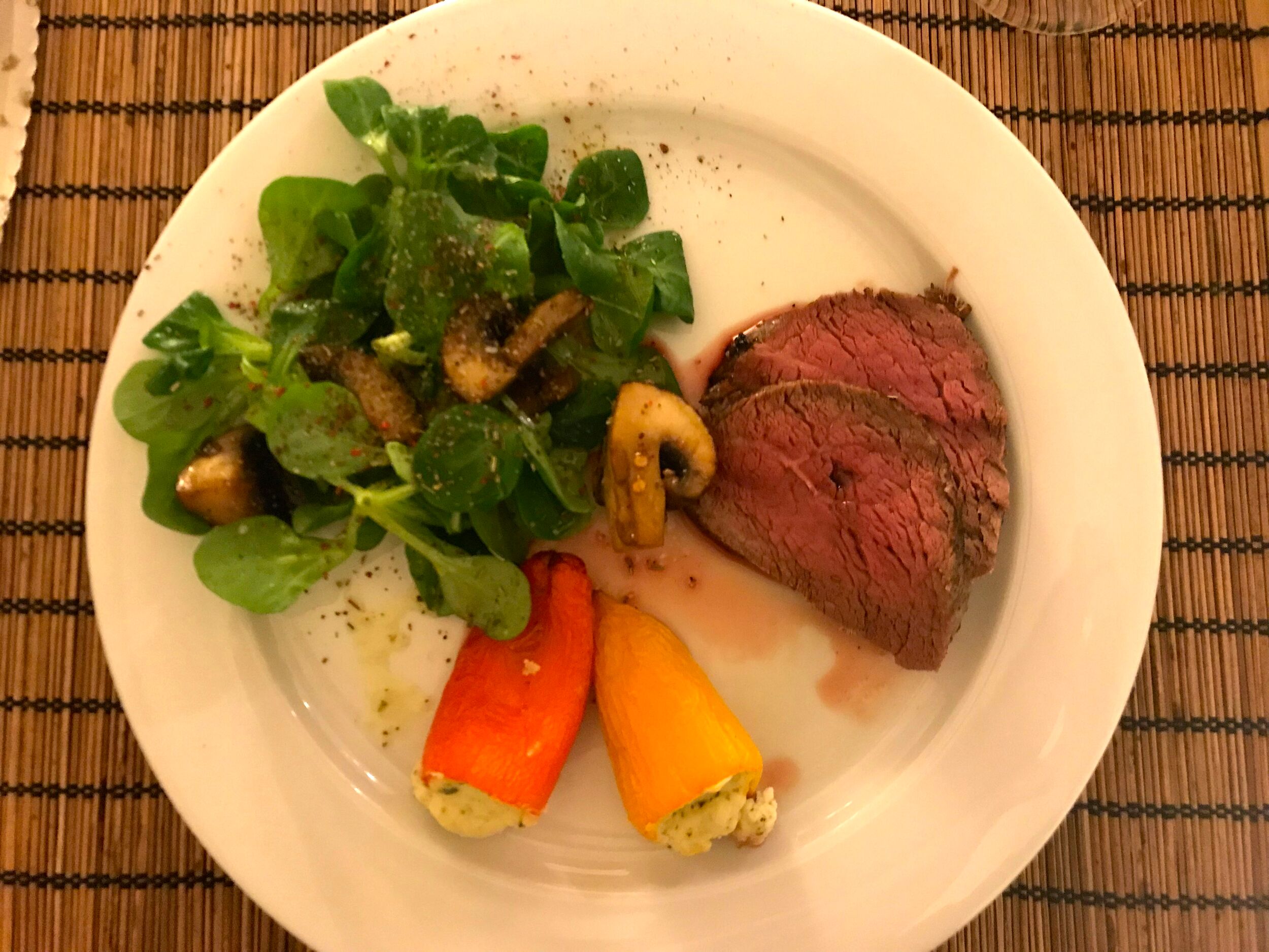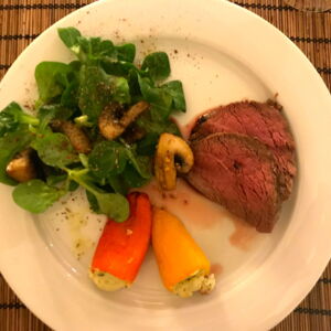 Niedergarrind mit gefüllten Peperoni und Nüssli-Pilzsalat